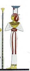 Nepthys is the daughter of Geb and Nut. She is the twin sister of Isis (the sister-wife of Osirus). Her brother Set is her husband, and, in some variations of the myth, Anubis is their son. Nepthys is an assistive (but not passive) goddess of protection during transitions-assisting in childbirth, and helping newly-dead souls find their way to the underworld. She and her sister Isis are very close and work as a team-to protect the barque of the sun as it crosses the sky; to locate the pieces of Osirus's body after he is murdered and dismembered by Set; to care for the child Horus the Younger (Isis is described as his "birth mother," and Nepthys is described as his "nursing mother"). She is typically depicted as a human crowned with the hieroglyphs representing her name, which look something like a goblet, and indicate that she is the "Lady of the Temple Enclosure." Nepthys is often overlooked because of Isis's cult status, but she is every bit as powerful as her more well-known sister.